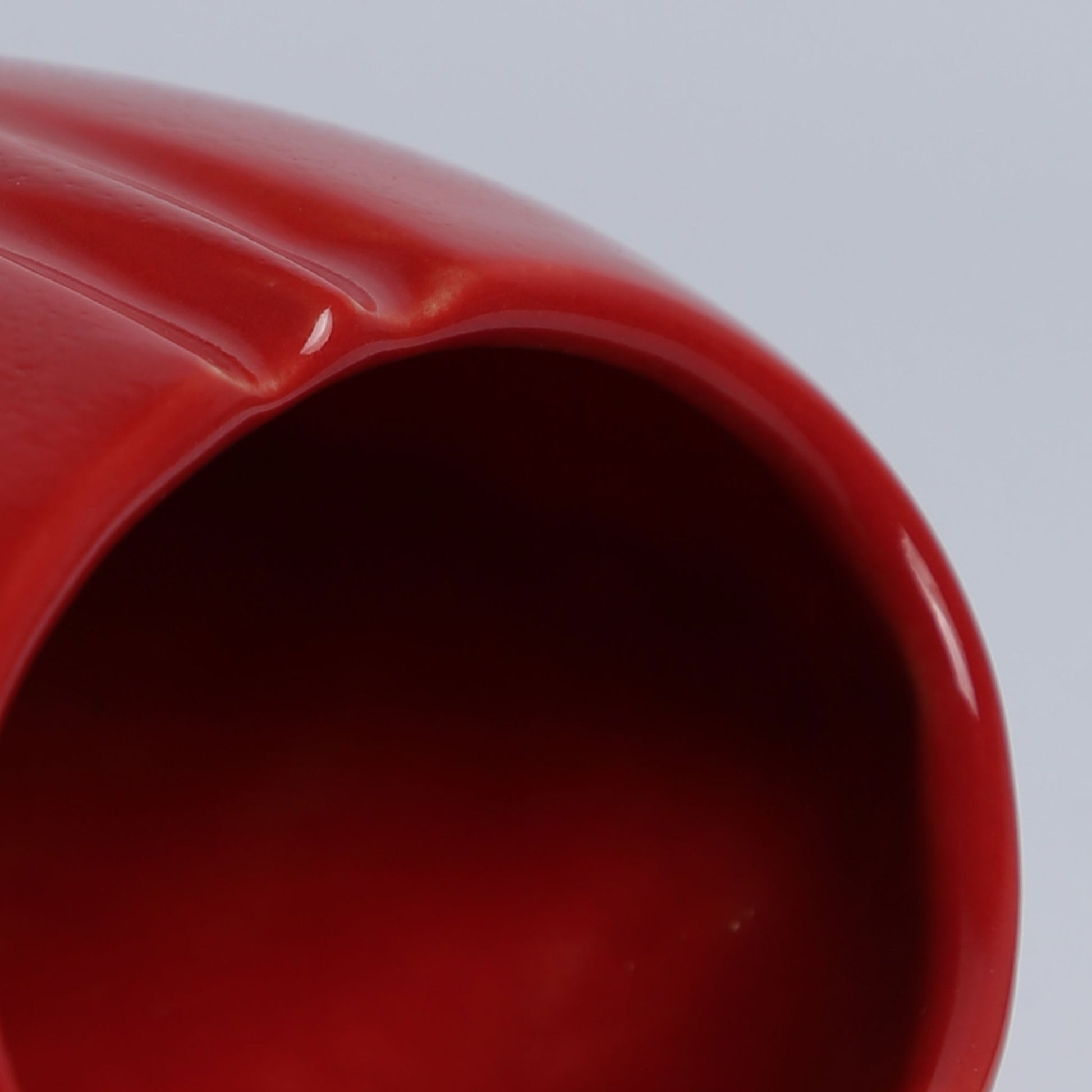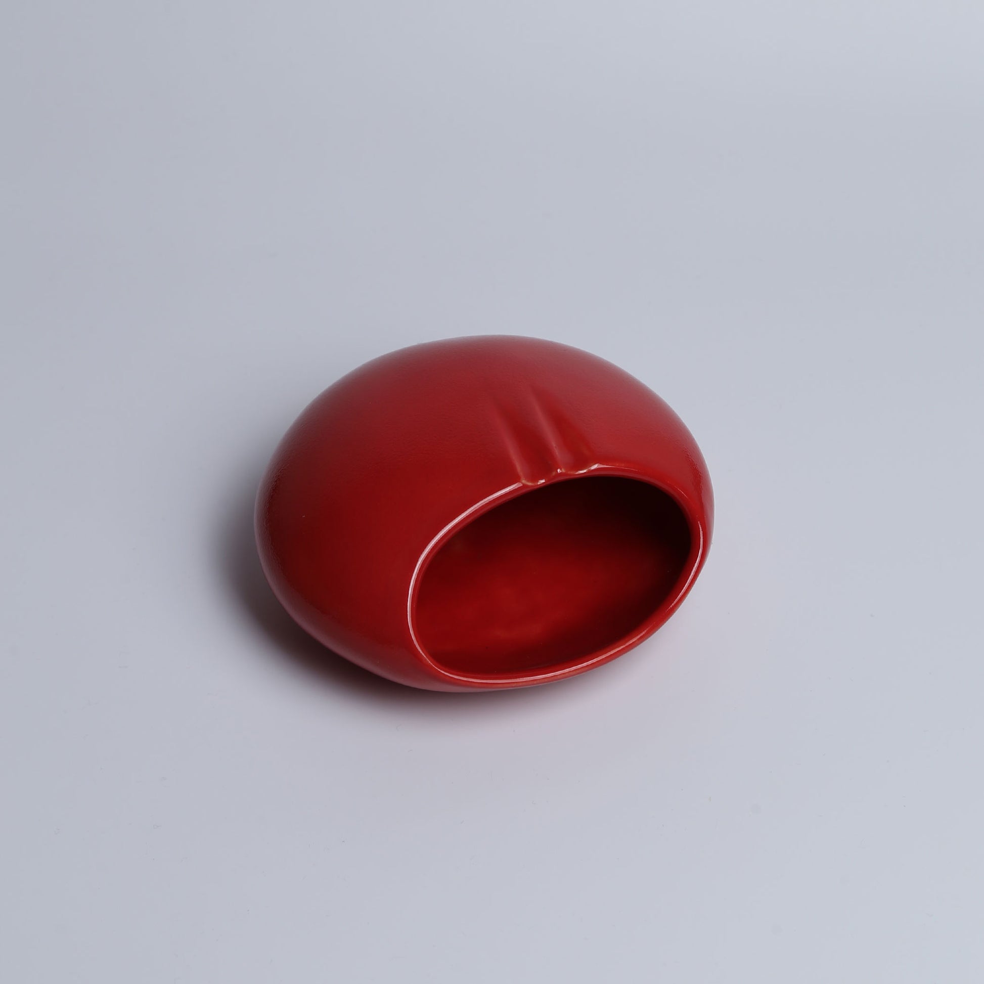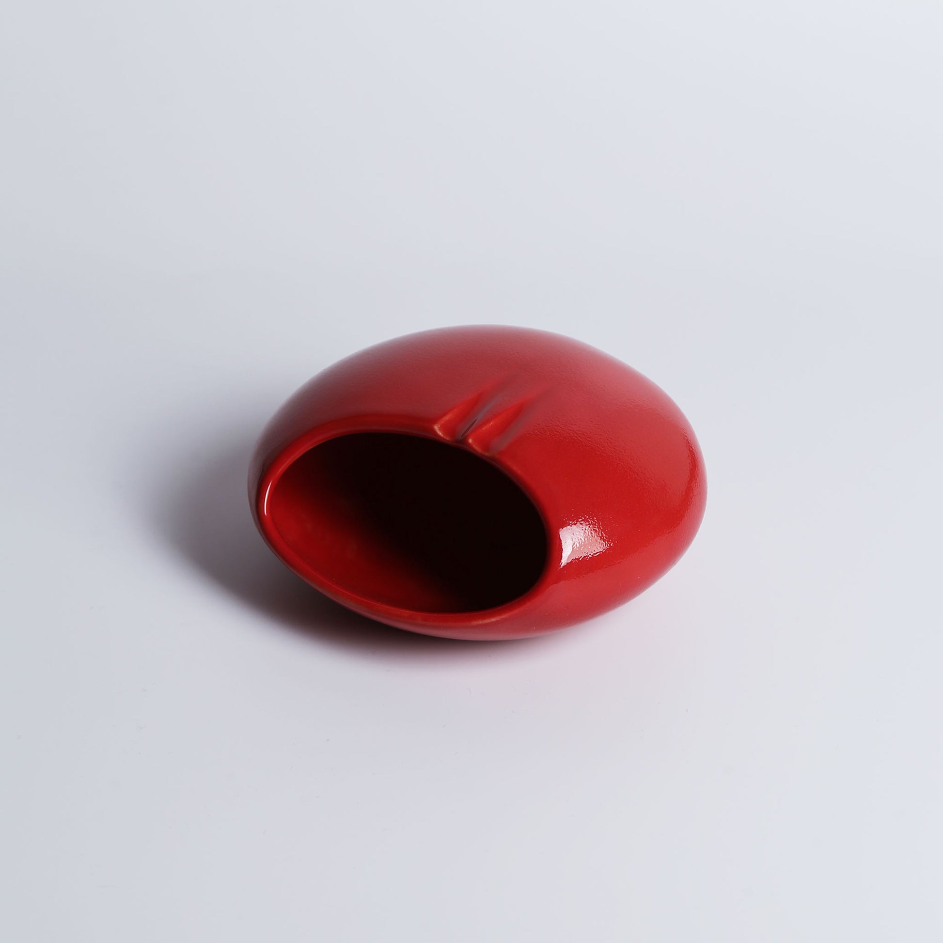 Tiene una forma ovalada con dos ranuras en la parte superior para apoyar cigarrillos, y está disponible en un tono rojo de aire nostálgico.